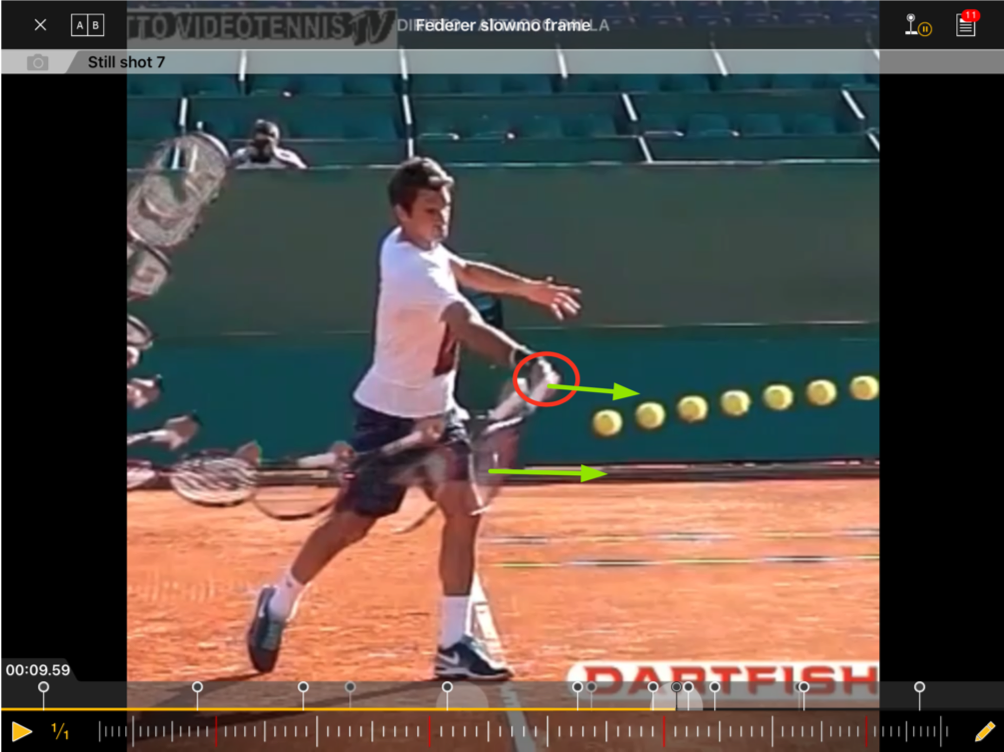 Oggi concludiamo l’analisi del dritto, abbiamo sfruttato i frame di questo video eseguito alla perfezione grazie a software di videoanalisi specifici, come detto presi dall’archivio dartifsh tv- progetto videotennis di Danilo Pizzorno, e sfruttando l’analisi tecnica con riferimenti e tools, eseguiti da me, lavorando sul video stesso.