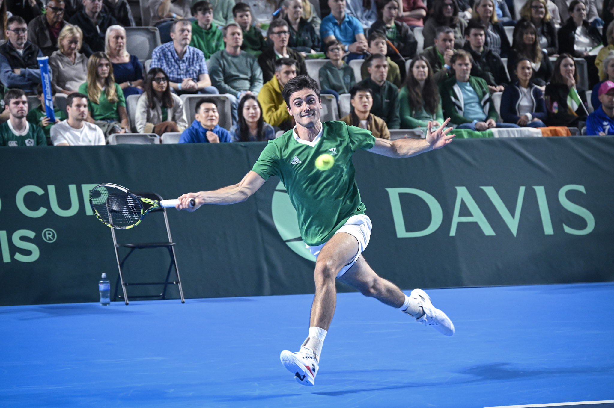 Ad opporsi nell’incontro di apertura alla Sport Ireland National Indoor Arena di Dublino capitan Conor Niland ha schierato Peter Buldorini, classe 2004 nativo di Recanati con un ranking da numero 920 del mondo, quindi nel pieno delle attivitá del circuito ITF, con qualche guizzo nei Challenger.
